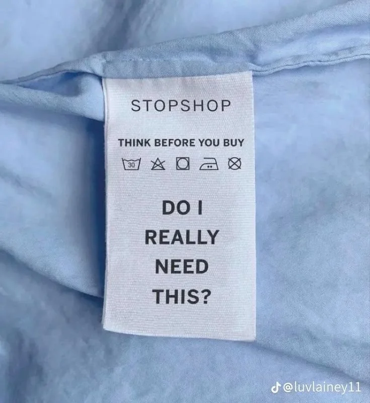 Ways to stop fast fashion and reduce your environmental impact could include buying less, not supporting large corporations who participate in fast fashion (like Shein), choosing sustainable fabrics, shopping secondhand, repairing your clothes or upcycling, and supporting sustainable brands.